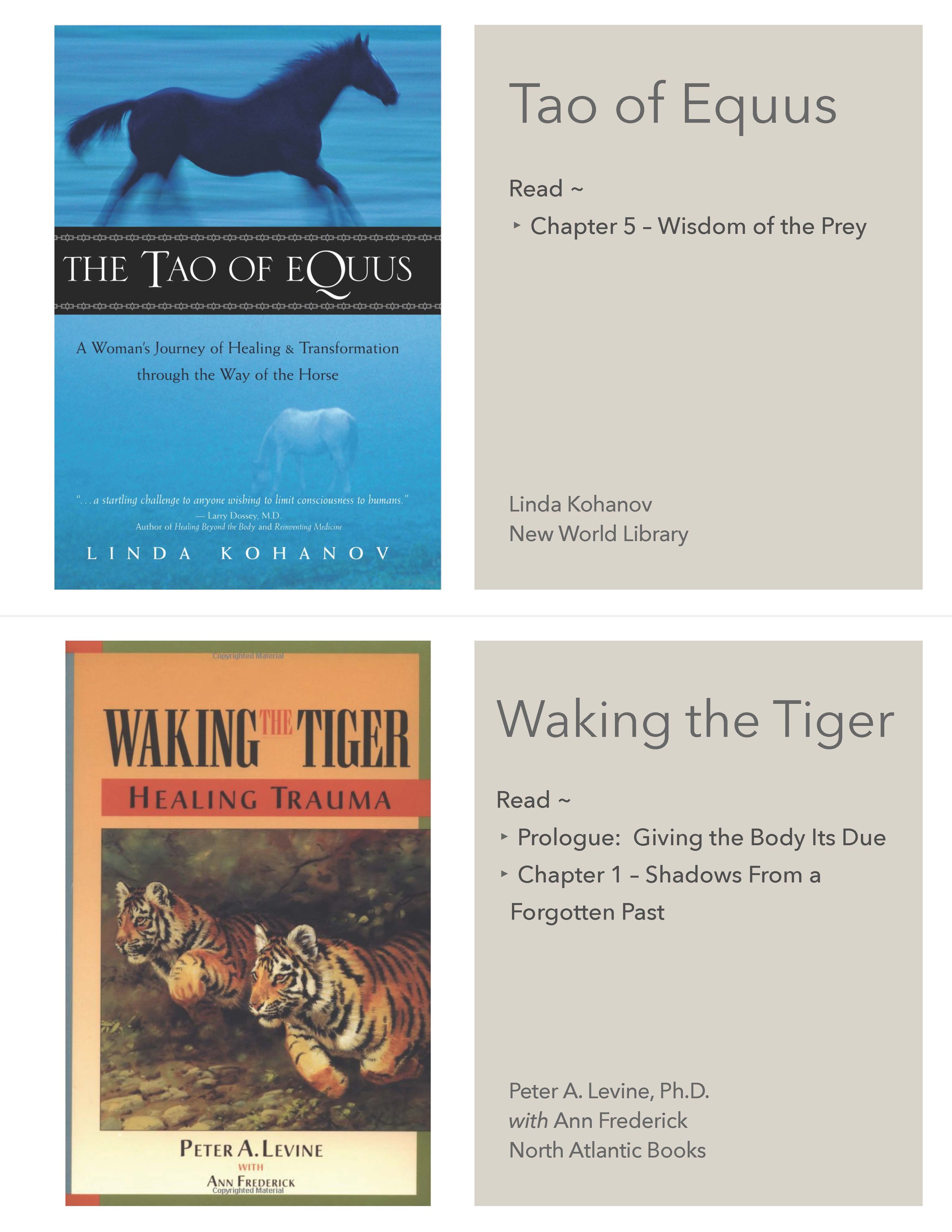 Progress Facilitator Training Curriculum Complete & Continue Next Lesson Learn More Introduction 5 Lessons Questions? Founders: Jane Strong & David Sonatore Curriculum Structure Booklet Guidelines for Facilitation Booklet Principles Overview Resonance 11 Lessons Module 1 Video Lecture Wisdom of the Prey Video Wisdom of the Prey Booklet Joint Fluidity Booklet Joint Fluidity Video Body Scan Video Body Scan Booklet Reading Assignments Practicum (printable) Video Assignment Upload Student Exam Connection 9 Lessons Module 2 Video Lecture Grooming Introduction Video Choosing and Haltering Video Grooming Video Grooming Booklet Reading Assignments Practicum (printable) Video Assignment Upload Student Exam Collaboration 12 Lessons Module 3 Intro Video Collaborative Philosophy Leading - Approach and Demonstration Environmental Walk Obstacle Course Leading Booklet Liberty Work Booklet Boundaries Booklet Reading Assignment Practicum (printable) Video Assignment Upload Student Exam Emotional Agility 10 Lessons Module 4 Video Lecture Practicum (printable) Reading Assignments Emotional Fitness Booklet Somatic Experiencing Booklet Polyvagal Theory Booklet The Messages Behind Emotion Training (Apple Keynote) The Messages Behind Emotion Training (PowerPoint) Presentation Skills Video Assignment Upload Facilitator Training Curriculum Complete & Continue Next Lesson Learn More Resonance Reading Assignments
