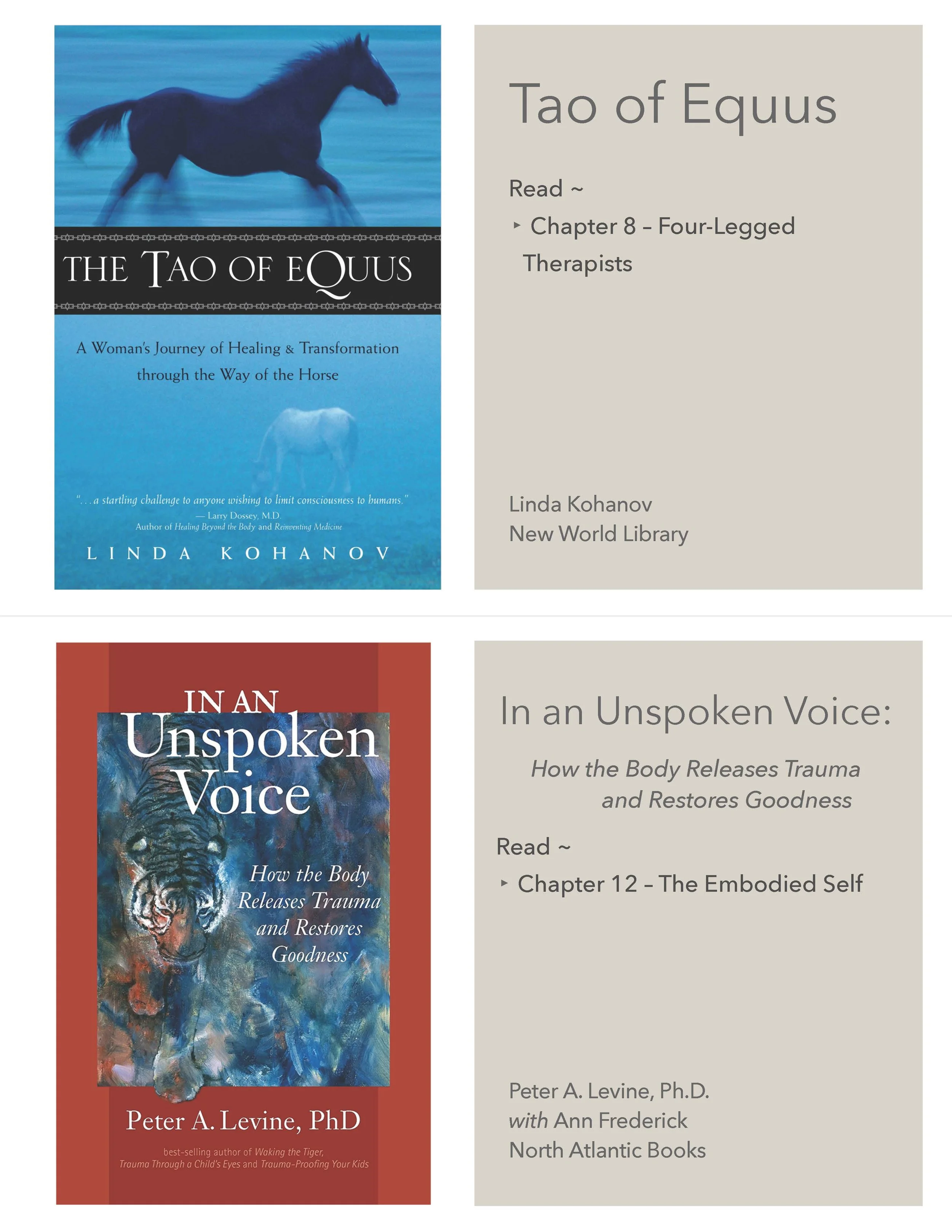 Progress Facilitator Training Curriculum Complete & Continue Next Lesson Learn More Introduction 5 Lessons Questions? Founders: Jane Strong & David Sonatore Curriculum Structure Booklet Guidelines for Facilitation Booklet Principles Overview Resonance 11 Lessons Module 1 Video Lecture Wisdom of the Prey Video Wisdom of the Prey Booklet Joint Fluidity Booklet Joint Fluidity Video Body Scan Video Body Scan Booklet Reading Assignments Practicum (printable) Video Assignment Upload Student Exam Connection 9 Lessons Module 2 Video Lecture Grooming Introduction Video Choosing and Haltering Video Grooming Video Grooming Booklet Reading Assignments Practicum (printable) Video Assignment Upload Student Exam Collaboration 12 Lessons Module 3 Intro Video Collaborative Philosophy Leading - Approach and Demonstration Environmental Walk Obstacle Course Leading Booklet Liberty Work Booklet Boundaries Booklet Reading Assignment Practicum (printable) Video Assignment Upload Student Exam Emotional Agility 10 Lessons Module 4 Video Lecture Practicum (printable) Reading Assignments Emotional Fitness Booklet Somatic Experiencing Booklet Polyvagal Theory Booklet The Messages Behind Emotion Training (Apple Keynote) The Messages Behind Emotion Training (PowerPoint) Presentation Skills Video Assignment Upload Facilitator Training Curriculum Complete & Continue Next Lesson Learn More Connection Reading Assignments